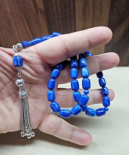 KATALİN KAPSÜL KESİM TESBİH Görseldeki mavi renkli, kapsül kesim katalin tesbih, şık tasarımı ve parlak görünümü ile dikkat çekiyor. zarif detaylara sahip. (Habbe ölçüsü : 8×11.5mm) Püskül dahil boyu :33cm dir.