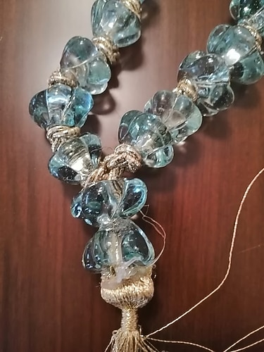 Tesbih,Dekoratif,camdan yapılmış, büyük boy, yeşil altın rengi,dekoratif masa süsü.