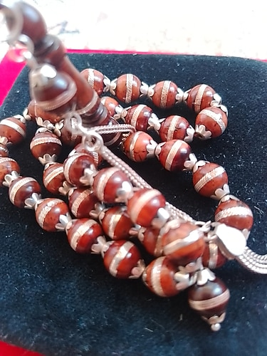 OLDUKÇA ESKİ GÜMÜŞ SARMALI VE GÜMÜŞ PÜSKÜLLÜ KUKA 33 LÜK TESPİH