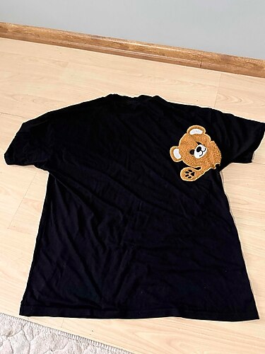 Kahverengi ayıcık baskılı, kısa kollu, yuvarlak yakalı erkek kadın unisex tişört. Rahat ve salaş kesimiyle günlük dış mekan kullanımı için uygundur. XXL BEDEN 4 5 tane almıştım fazlalık evde