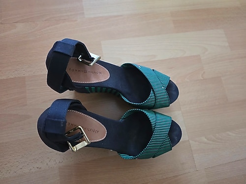 yazlık dolgu topuk Tommy Hilfiger 39-40 numara, emsali bulunamayan daha kötüleri 2600 ₺ civarında olan bu ayakkabıyı ihtiyaçtan satıyorum, çok rahat ve bilekten cırt cırtlı