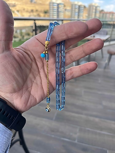 925 ayar gümüş püsküllü, kesme model uçak camı tesbih.