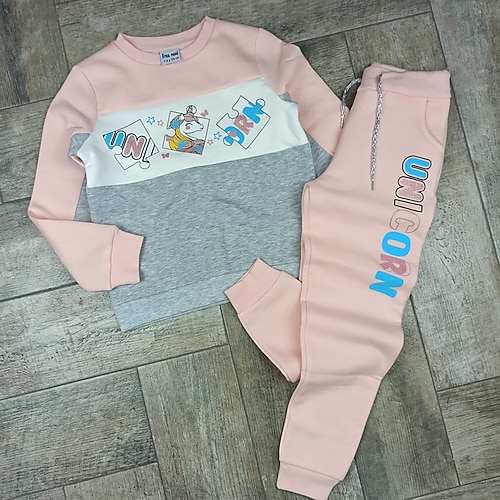 Sıfır Üründür.Üst Sweatshirt Bisiklet Yaka Uzun Kollu Unicorn Desenli Alt Eşofman Lastikli ve Bağcıklı Bel Cepli Unicorn Yazı Desenli.Üst Sweatshirt Omuzdan Bel Boyu 38 cm Kol Altından Diğer Kol Altına En Boyu 32 cm Alt Eşofman Belden Paça Boyu 62 cm Bedenimiz-3/4 Yaş Takım Son Kalan Beden Olduğu İçin İndirimli Üründür.