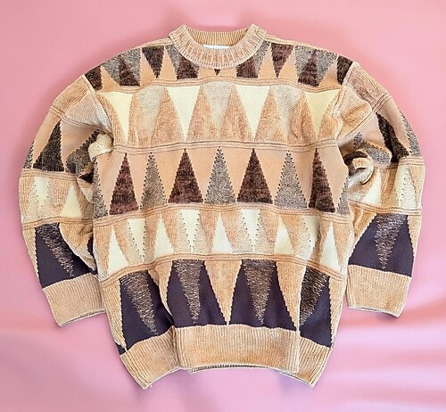 Vintage Kazak. Bej-kahve tonlarında üçgen motifler, dağ/orman esintili tribal desenler.