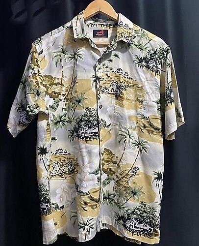 Vintage Tropikal Desenli Gömlek Retro desen, rahat kesim