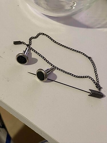 Yaka iğnesi ve kol düğmesi temiz sağlam