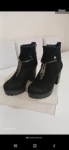 topuk boyu 7-8 cm.civarı. yepyeni, siyah, kaymaz taban.su geçirmez, süet,çok şık duruşu olan tarzz bir bottur.tüm görselleri mevcuttur.inceleyin.haricen sorularınız varsa da sorabilirsiniz.
