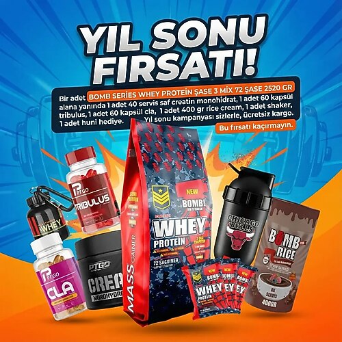✅ Bomb Series Whey Protein (72 Şase - 2520 GR): Pratik kullanım, yüksek protein!