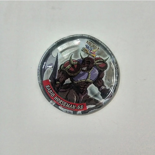 Yu-Gi-Oh Metal Taso No:68 Dönem 2000/2010 arasi Karekter : Rabid Horseman Tür : Gümüs taso No :68 Kondisyon %90 Fiyat : 150 tl