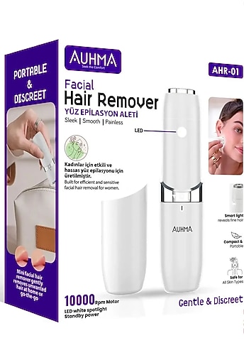 🔸 Acısız, Pürüzsüz ve Etkili! Auhma AHR-01 Yüz Epilasyon Aleti ile yüzünüzdeki istenmeyen tüylerden nazikçe ve konforlu bir şekildekurtulun. Hassas bölgeler için özel tasarlanmışbu epilatör, kadınlar için güvenli ve pratik bir tüy alma çözümüdür. 🔍 LED Spot Işık Teknolojisi ✨ Akıllı beyaz LED ışığı sayesinde en ince tüyleri bile görün! 💄 Makyaj öncesi kusursuz bir cilt için tüyleri dipten temizler. ⚙️ Yüksek Performanslı Motor 🔄 10.000RPM motor gücüile hızlı ve etkili tüy giderme 💡 Standby modunda düşük enerji tüketimi: <10UA 🔋 Çalışma Gerilimi: 1.5V 🧳 Kompakt & Taşınabilir 💼 Çantanızda kolayca taşıyabileceğiniz şık ve hafif tasarım 🌸 Evde veya seyahattehızlı tüy giderme konforu 📦 Sessiz ve dikkat çekmeyen yapısıyla istediğiniz yerde kullanım 🛡️ Tüm Cilt Tipleri İçin Güvenli 🧘♀️ Cildi tahriş etmez. 🌿 Hassas ciltlere özel geliştirilmiş yaylı bıçak başlığı (30Cr13 paslanmaz çelik)