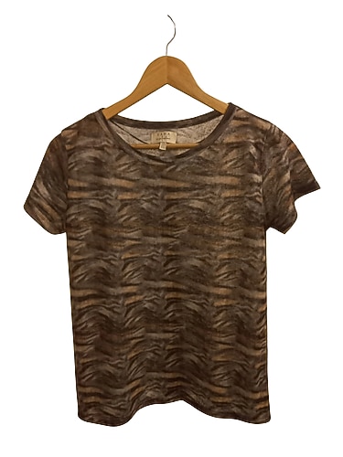 Zara Marka Bayan Tshirt: Lekesi ve yırtığı yoktur. Hafif transparandır. Yeni gibidir. %100 Polyesterdir. S bedendir.Ancak iade olmadığından verdiğim ölçülere göre alım yapınız. Boy 61 cm.-Koltuk altından itibaren boyu 41 cm.-Koltuk altından koltuk altına tek taraftan eni 46 cm. (Esneme 7 cm.)-Orta kısımdan tek taraftan eni 47 cm. (Esneme 10 cm.)-En altından tek taraftan eni 48 cm. (Esneme 10 cm.)-Omuz 7.5 cm.-Kol boyu 14 cm.-Ense açıklığı 23 cm. (Esneme 6 cm.)-Kol girişinin tek taraftan eni 15 cm. (Esneme 4 cm.)-Yaka açıklığı 6 cm.-Kol oyuntusu 19 cm. (Esneme 4 cm.)'dir. #tshirt #bayan tshirt #kadın tshirt #transparan bayan tshirt