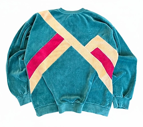 Zümrüt Yeşili Kadife Kumaş Kazak. Üstünde cesur çapraz (diagonal) şeritler.